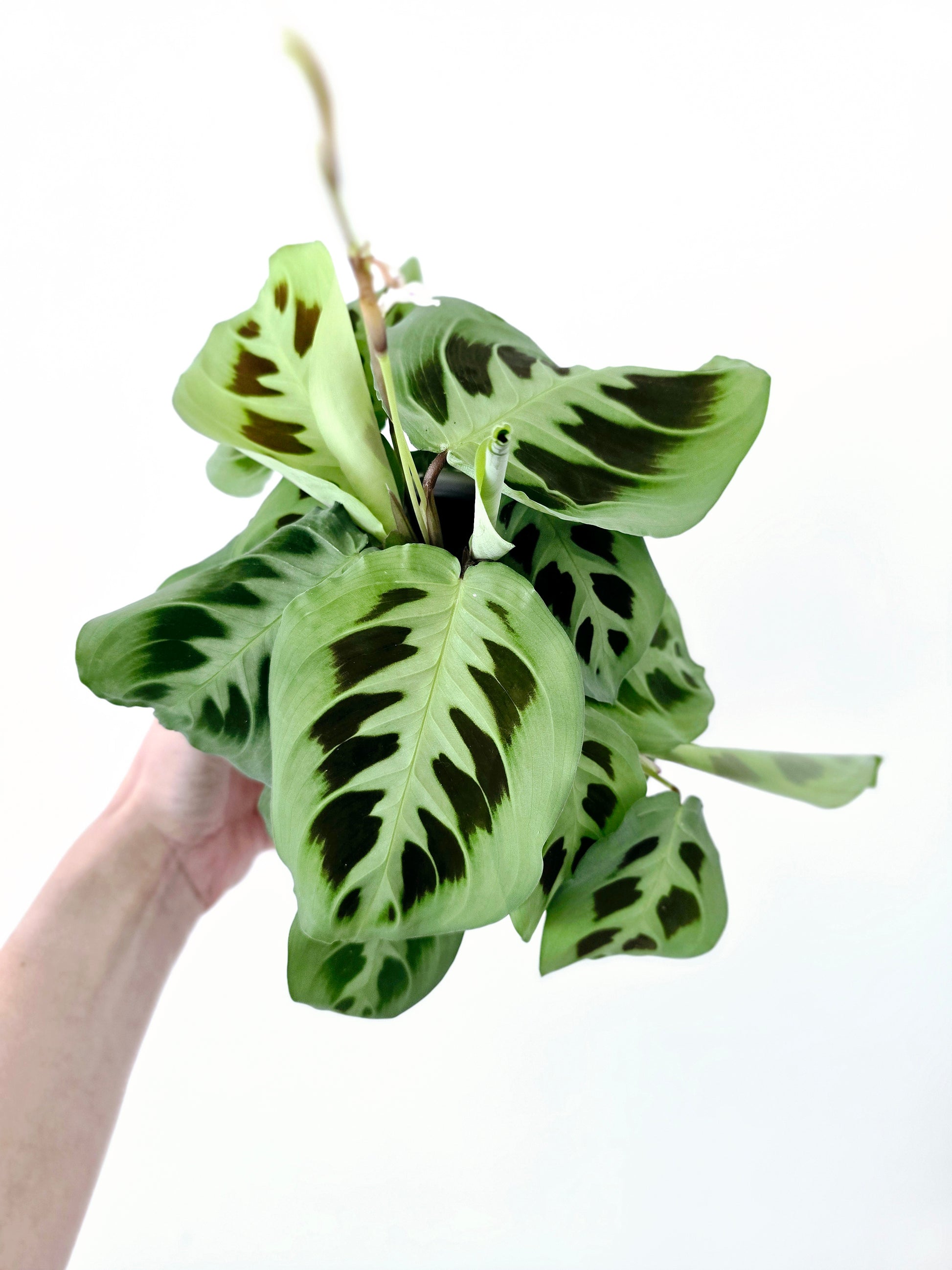 Get ready to feast your eyes on some fierce and fabulous foliage! The Maranta Leuconeura 'Green' boasts vibrant, variegated leaves that are as unique and intricate as a master artist's brushstrokes.